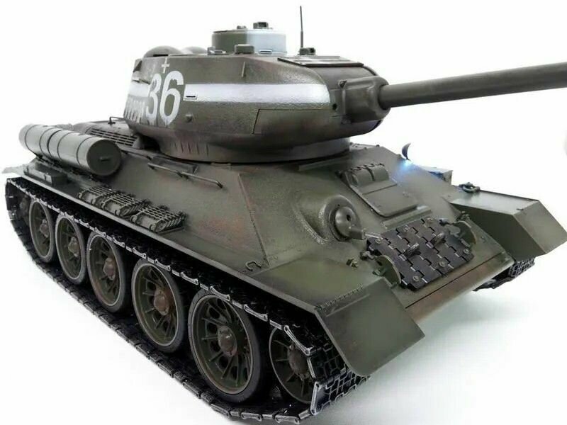 | Комплектация | Радиоуправляемый танк Taigen Т34-85; Пульт управления 2.4G версии V3; Аккумулятор NiMh 7.2V 1700mAh; Зарядное устройство для аккумулятора; Масло для дымовой машины; Набор наклеек и аксессуаров |