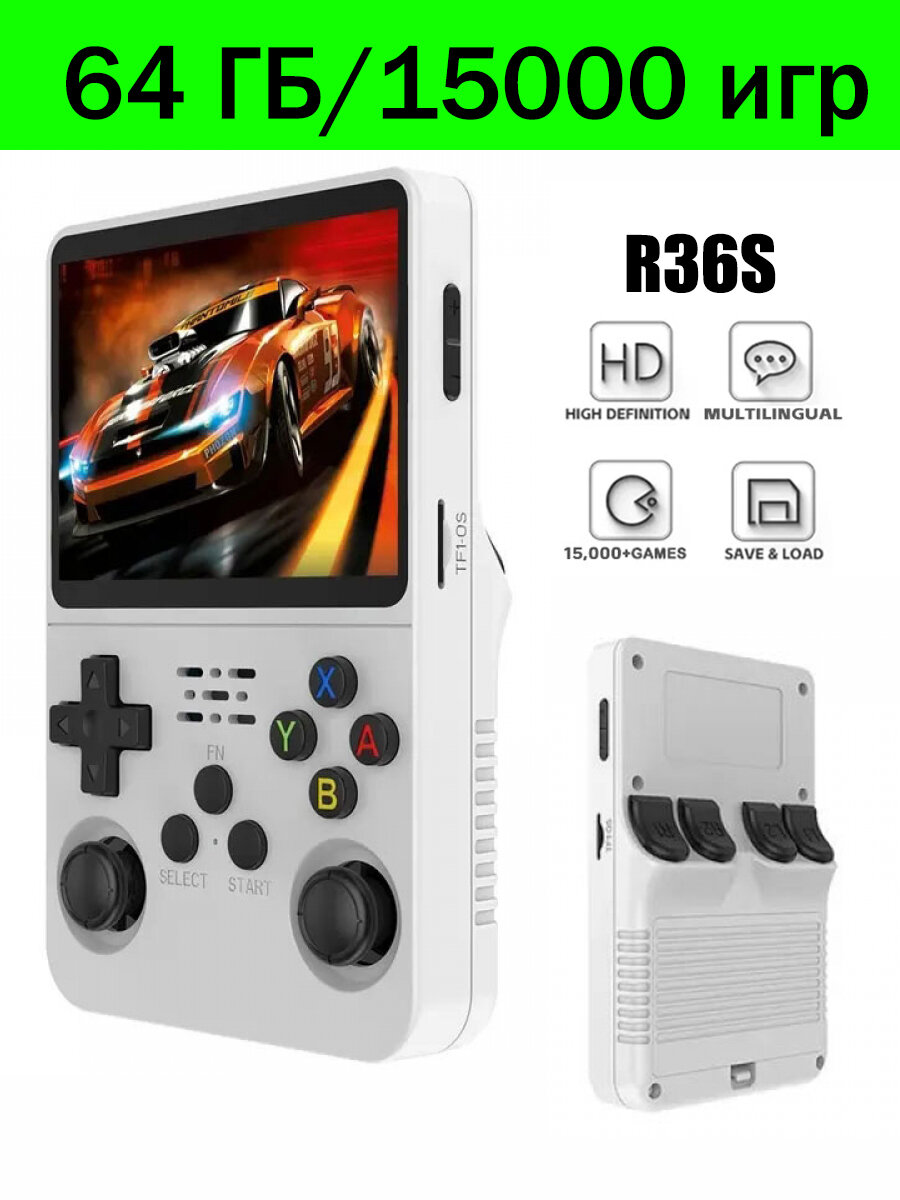 R36S Портативная игровая консоль 3,5 дюйма IPS экран 64 Гб Классическая ретро игровая консоль Arkos System Портативный карманный видеоплеер белый: сравнение цен, характеристики, фото, актуальное наличие и цены.