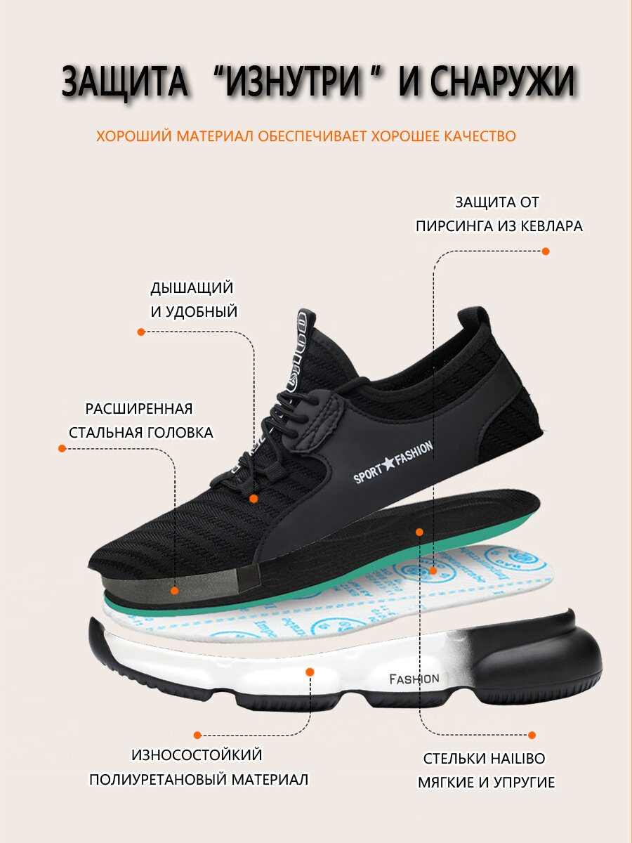 Антиразбойный дизайн: Стальной носок обеспечивает безопасность при сдавливании пальцев ног, гарантируя защиту от возможных травм на работе или в повседневной жизни.