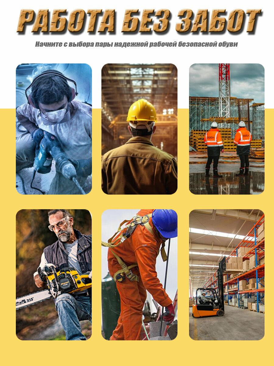 Широкий спектр применимых мест: Защитная обувь подходит для заводов, строительных площадок, авторемонтных мастерских, оборудования, крыш, складов и других рабочих мест.