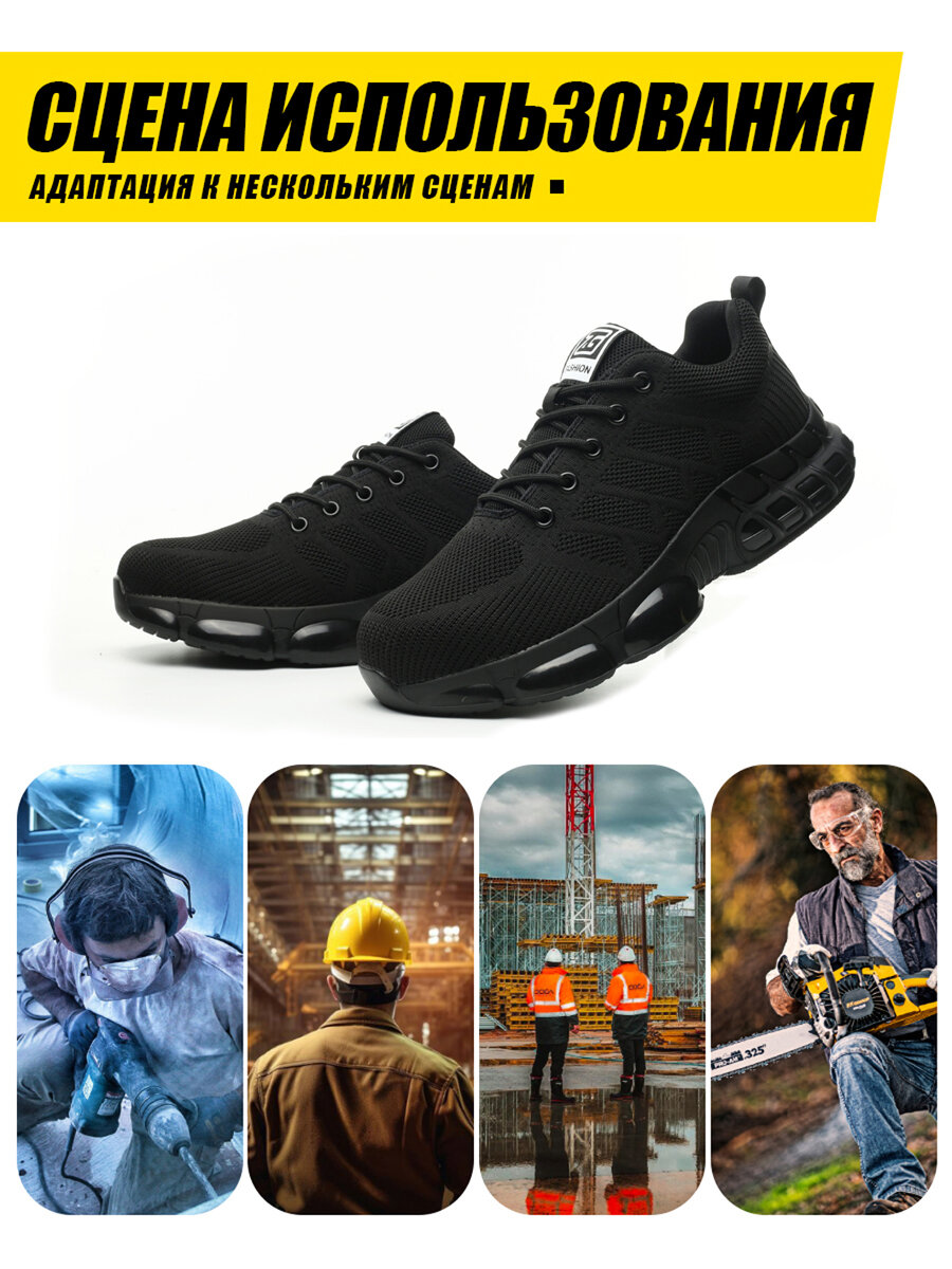 Широкий спектр применимых мест: Защитная обувь подходит для заводов, строительных площадок, авторемонтных мастерских, оборудования, крыш, складов и других рабочих мест. Вы можете сосредоточиться на работе, не беспокоясь о травмах ног. Их также можно использовать как повседневную спортивную обувь или обычные кроссовки.