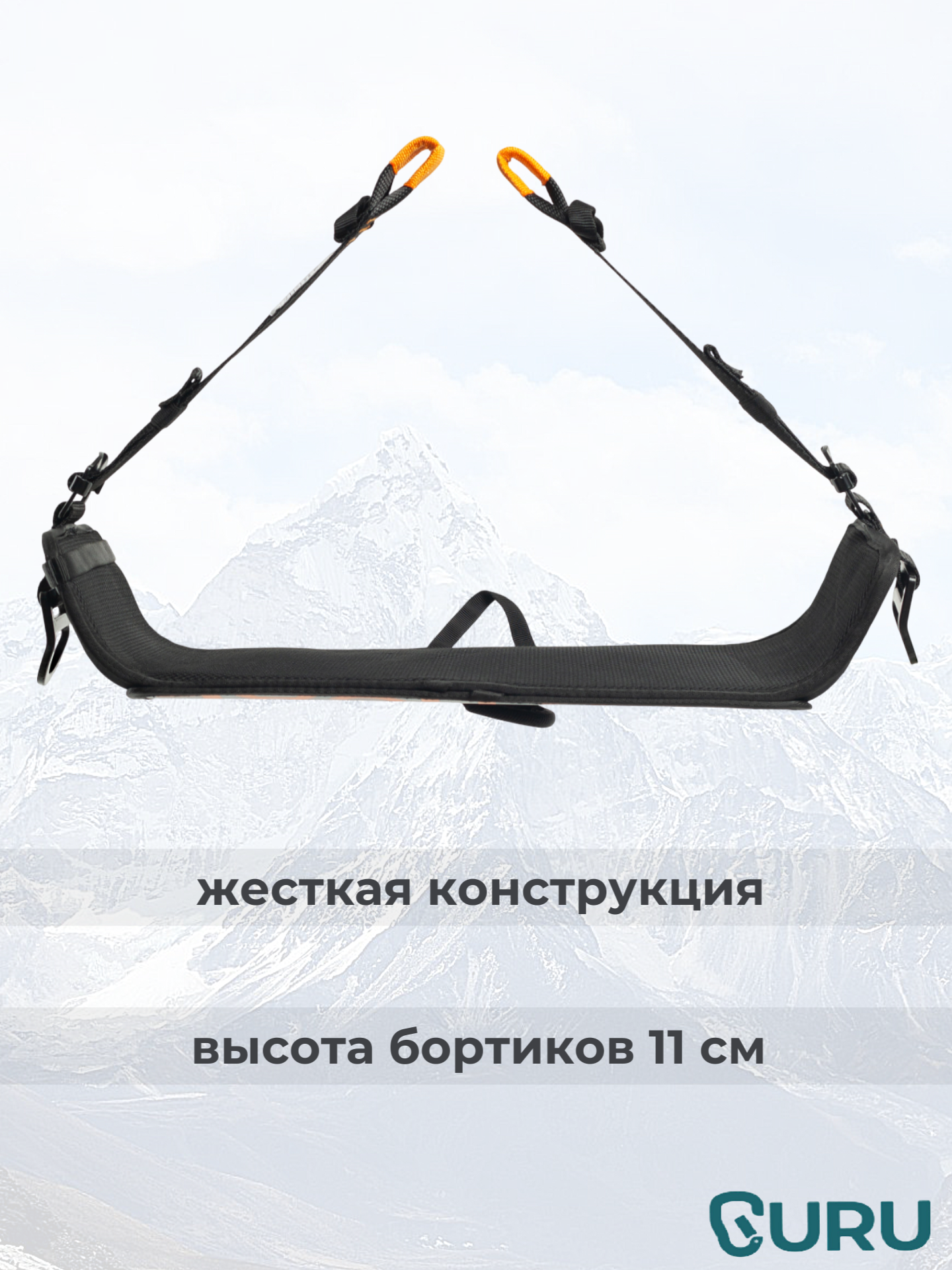 Жесткие боковины ограничивают давление подвесной системы на бедра. Длина подвесных строп регулируется быстрозажимными пряжками.