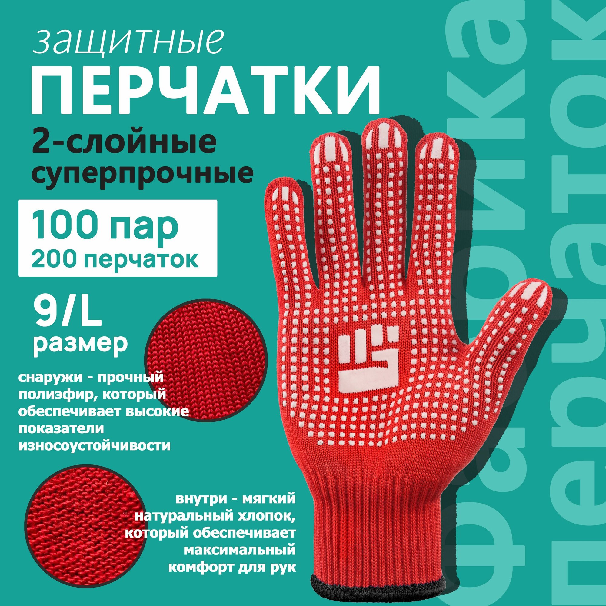 Купить Рабочие хозяйственные перчатки Фабрика перчаток из хб материала 2-слойными с прорезиненным ПВХ покрытием на ладонях и резинкой для надежной защиты рук 10 класс, 6 нитей, красные, L, 100 пар с доставкой по всей России. Рабочие хозяйственные перчатки Фабрика перчаток из хб материала 2-слойными с прорезиненным ПВХ покрытием на ладонях и резинкой для надежной защиты рук 10 класс, 6 нитей, красные, L, 100 пар: сравнение цен, характеристики, фото, актуальное наличие и цены.