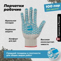 Рабочие хозяйственные перчатки Фабрика перчаток из хб материала с прорезиненным ПВХ покрытием на ладонях и резинкой для надежной защиты рук 10 класс, 4 нити, белые, М, 100 пар