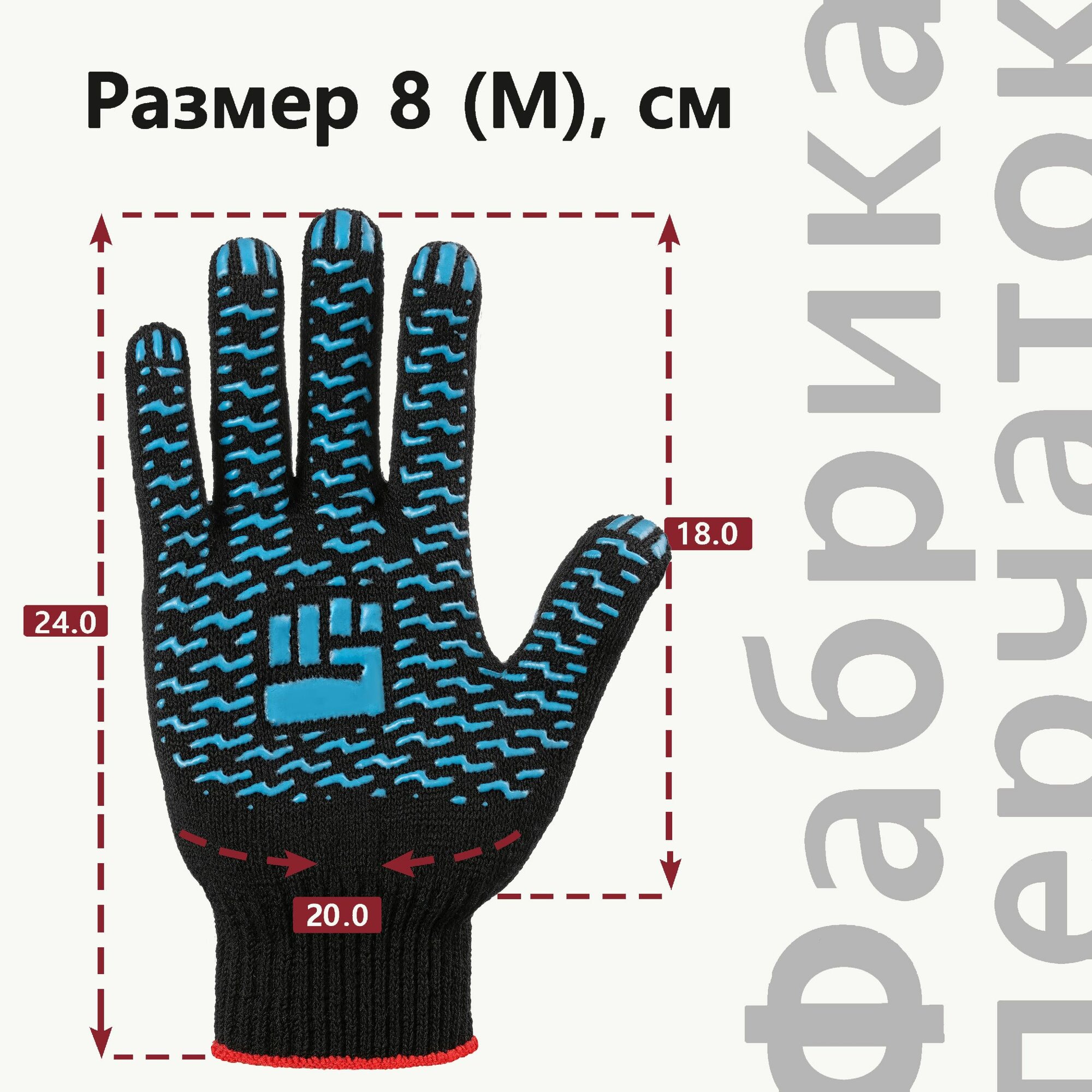 Рабочие трикотажные ХБ перчатки на 10 классе вязки средней плотности из линейки Фабрики перчаток. Перчатки рабочие обладают высокой тактильной чувствительностью за счет вязки высокого класса. Рекомендуются для общих производственных работ, которые не требуют повышенной защиты рук. Перчатки х/б отлично подходят для ремонтных работ, для работы по дому и в саду, благоустройства территории, обработки входящих товаров, погрузочно-разгрузочных работ, установки, наладки и ремонта оборудования. В производстве трикотажных хлопчатобумажных перчаток используется только высококачественная гипоаллергенная мягкая, но при этом прочная, пряжа класса А. Качественное ПВХ-покрытие, изготовленное по особой технологии компании Фабрика перчаток, препятствует быстрому истиранию, увеличивая срок эксплуатации перчаток, а также улучшает сцепление с предметами и является дополнительным слоем защиты рук.