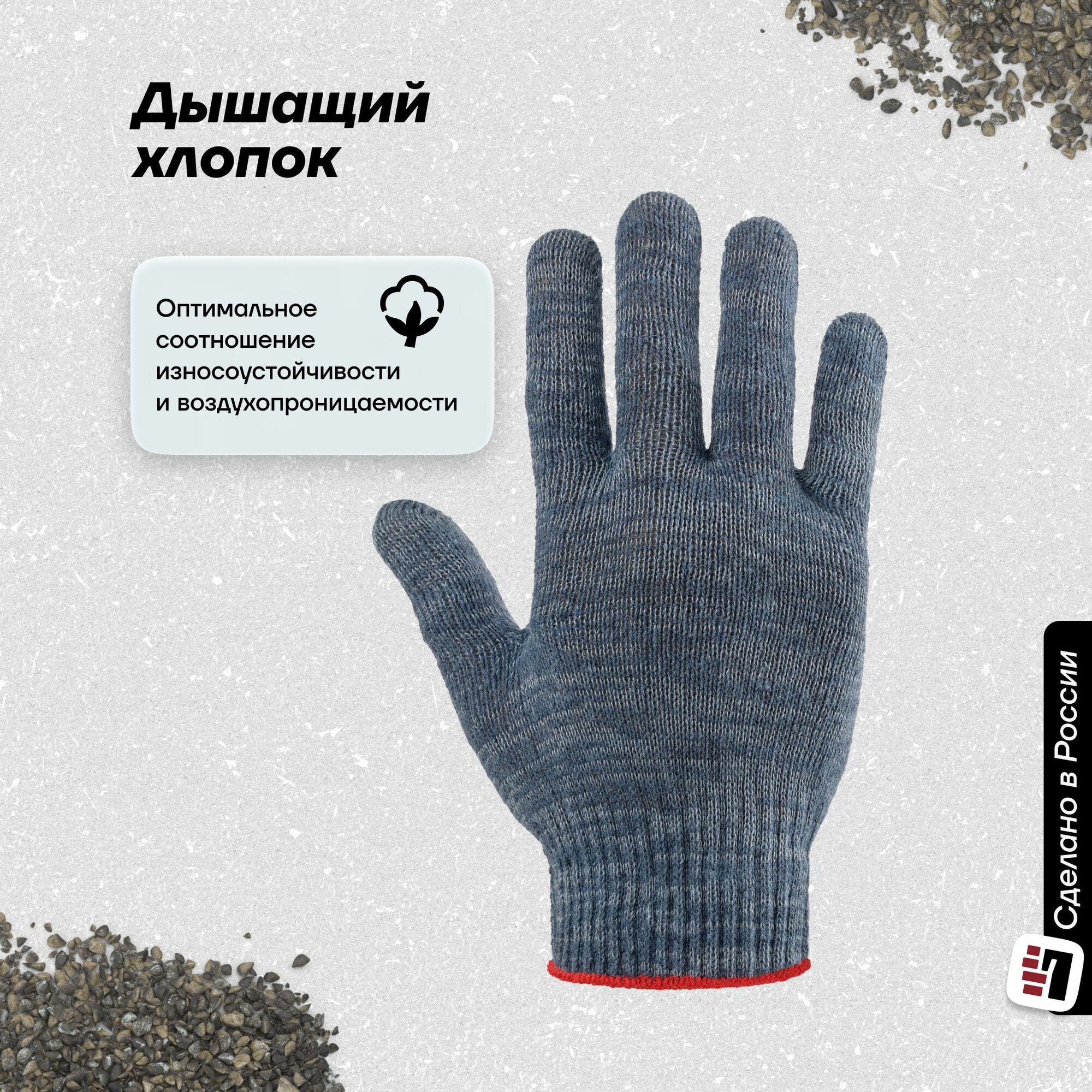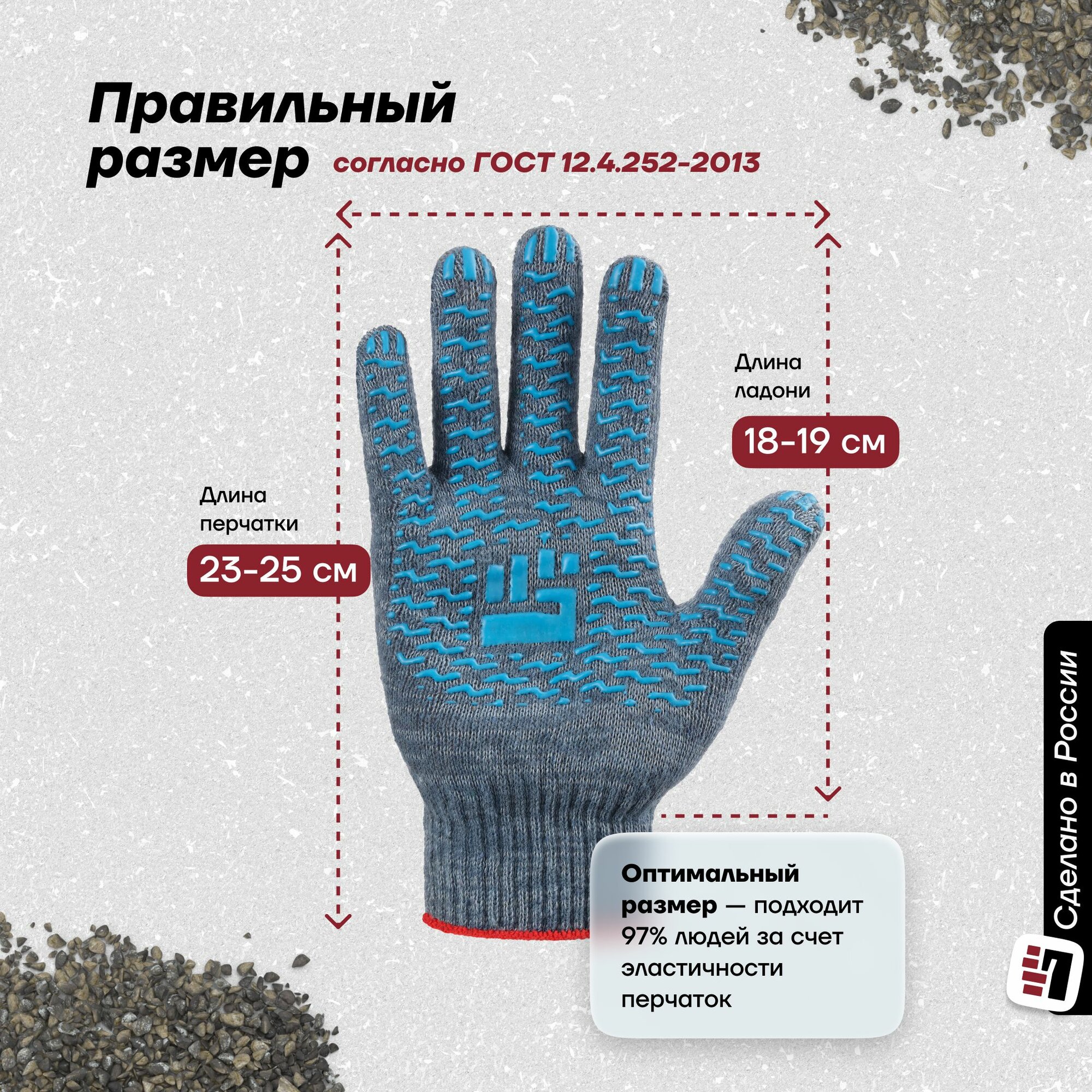 Рабочие трикотажные ХБ перчатки на 10 классе вязки средней плотности из линейки Фабрики перчаток. Перчатки рабочие обладают высокой тактильной чувствительностью за счет вязки высокого класса. Рекомендуются для общих производственных работ, которые не требуют повышенной защиты рук. Перчатки х/б отлично подходят для ремонтных работ, для работы по дому и в саду, благоустройства территории, обработки входящих товаров, погрузочно-разгрузочных работ, установки, наладки и ремонта оборудования. В производстве трикотажных хлопчатобумажных перчаток используется только высококачественная гипоаллергенная мягкая, но при этом прочная, пряжа класса А. Качественное ПВХ-покрытие, изготовленное по особой технологии компании Фабрика перчаток, препятствует быстрому истиранию, увеличивая срок эксплуатации перчаток, а также улучшает сцепление с предметами и является дополнительным слоем защиты рук.