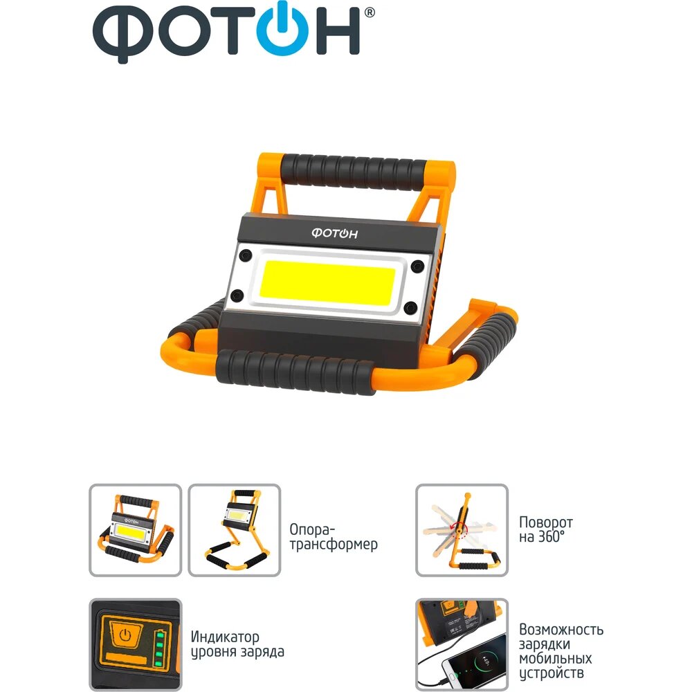 Рабочий аккумуляторный светодиодный фонарь-прожектор фотон WPB-6200 20W 24092: сравнение цен, характеристики, фото, актуальное наличие и цены.