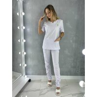 Рабочий Костюм С-401-Э. Хлопок и Стрейч. Универсальный медицинский костюм женский для пищевой деятельности, брюки и блузка косметолога, мастера стоматолога, врача и студентов.: сравнение цен, характеристики, фото, актуальное наличие и цены.