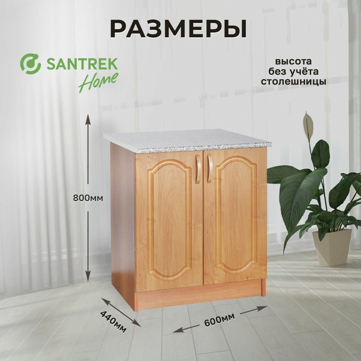 Кухонный гарнитур SANTREK HOME представляет собой идеальное решение для оформления пространства на кухне. Фасад напольного шкафа выполнен из качественного МДФ и корпус из ЛДСП, этот шкаф станет неотъемлемой частью вашего интерьерного решения. Шкаф для кухни разработан с учетом всех потребностей современных хозяек, обеспечивая функциональность и удобство использования. Модульная структура мебели позволяет легко интегрировать этот комплект в любую кухню. Рабочий стол для кухни с дверцами обеспечивает достаточно места для хранения различных принадлежностей. Кухонная тумбочка ольха, со столешницей гранит придает свежесть и элегантность вашей кухне, делая ее более уютной и современной. Матовая поверхность фасадов из МДФ облегчает уход за мебелью, что особенно важно в условиях активного использования кухни. Удобные ручки добавляют функциональности и стиля. Комплект включает все необходимые элементы для комфортного пользования: устойчивую конструкцию, которую легко установить. Модульные элементы кухни, позволяют вам комбинировать кухонную мебель по вашему выбору в полноценный кухонный гарнитур. Этот напольный шкаф – отличный выбор для тех, кто ценит качество и практичность в интерьере. Шкаф для кухни обеспечивает не только рабочее место, но и скрывает водопроводные трубы, придавая вашему пространству законченный вид, так как по стандарту предусмотрен вынос столешницы: спереди – 6 см, сзади – 10 см (для проведения коммуникаций. С данной моделью ваша кухня приобретет гармоничный облик, который будет радовать вас каждый день. Этот модуль станет отличным дополнением к любому дизайнерскому решению и поможет организовать ваше пространство максимально эффективно. Не упустите возможность обновить вашу кухню с помощью этого стильного шкафа! Дополните ваш кухонный гарнитур напольной мебелью от SANTREK HOME. Закажите практичный модуль прямо сейчас и ощутите комфорт и удовольствие от работы на кухне!