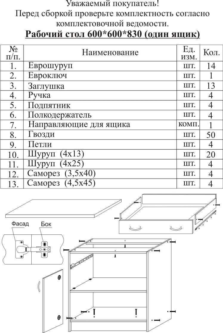 Преобразите свою кухню в элегантное и функциональное пространство с рабочим столом 40/50/60/80/100 от SANTREK HOME! Комплект состоит из модульного стола цвета ‘карара’ со столешницей цвета гранит, предназначенный для приготовления пищи и разделки продуктов. Ширина столешницы от 40 до 80 см и глубина 60 см делают гарнитур идеальным для различных кулинарных манипуляций. Выполненный из ЛДСП, стол выдержит годы эксплуатации. Модульная конструкция вмещает все необходимые элементы, включая непосредственно тумбочку, шкафчик с дверцами, полку и разделочный столик, чтобы создать свой идеальный кухонный набор. В комплектацию также можно включить ящик. Тумба легко собирается и оборудована надежной фурнитурой. Дополните ваш кухонный гарнитур напольной мебелью от SANTREK HOME, чтобы создать готовый интерьер вашей мечты. Закажите практичный модуль прямо сейчас и ощутите комфорт и удовольствие от работы на кухне!