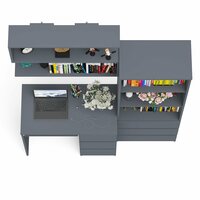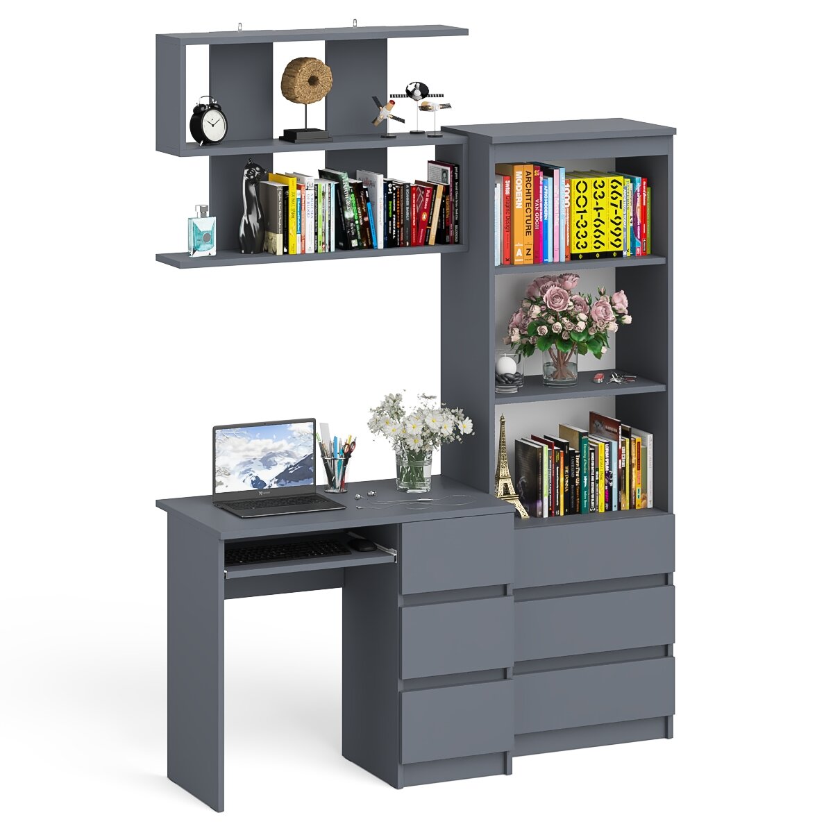 | Дополнительная информация | включает стол компьютерный три ящика правый, стеллаж с ящиками Мори и навесную полку; отсутствие ручек главное преимущество данной модели - роль ручек выполняют сами фасады; на нижних кромках опор предусмотрены пластиковые подпятники; поставляется в разобранном виде в надёжной упаковке |