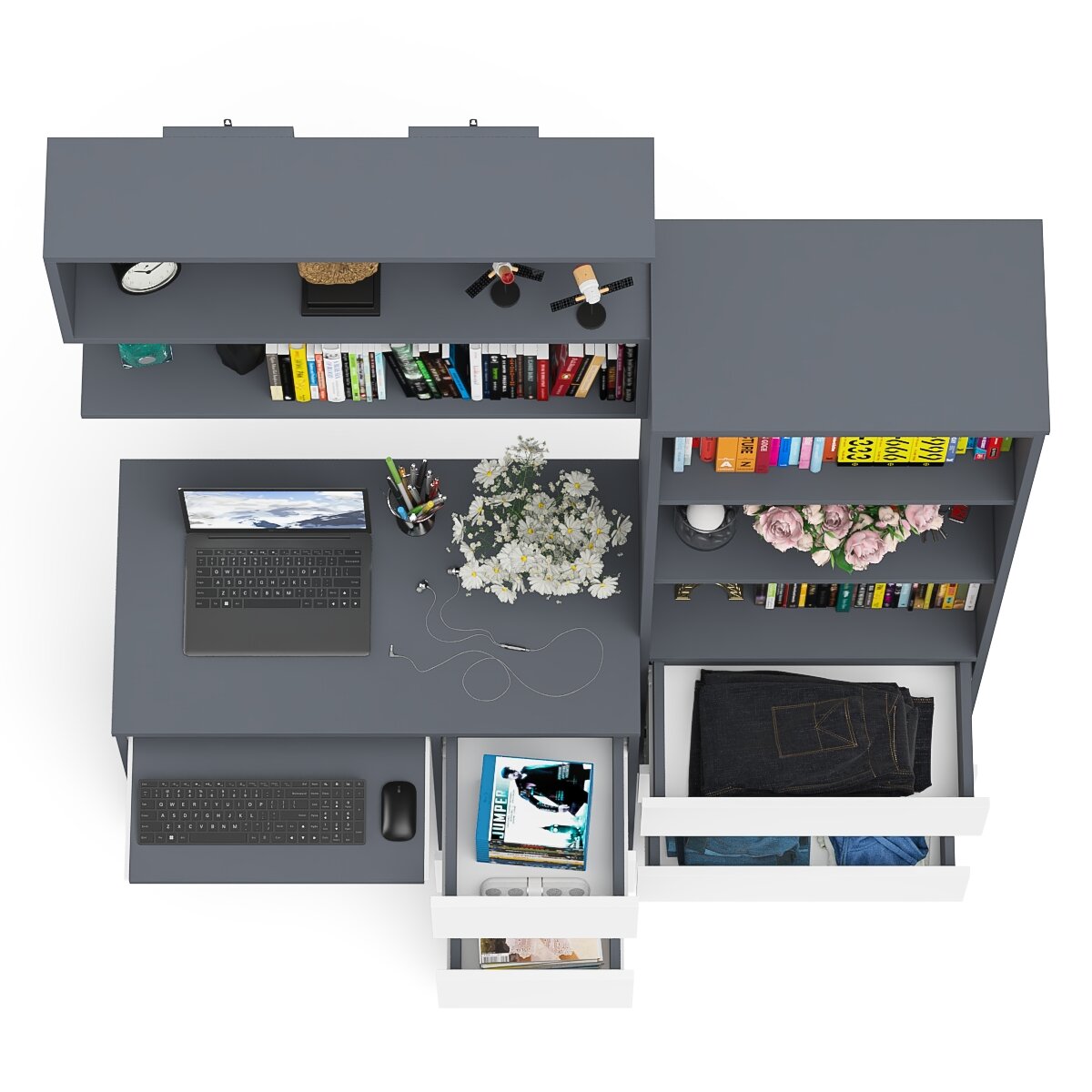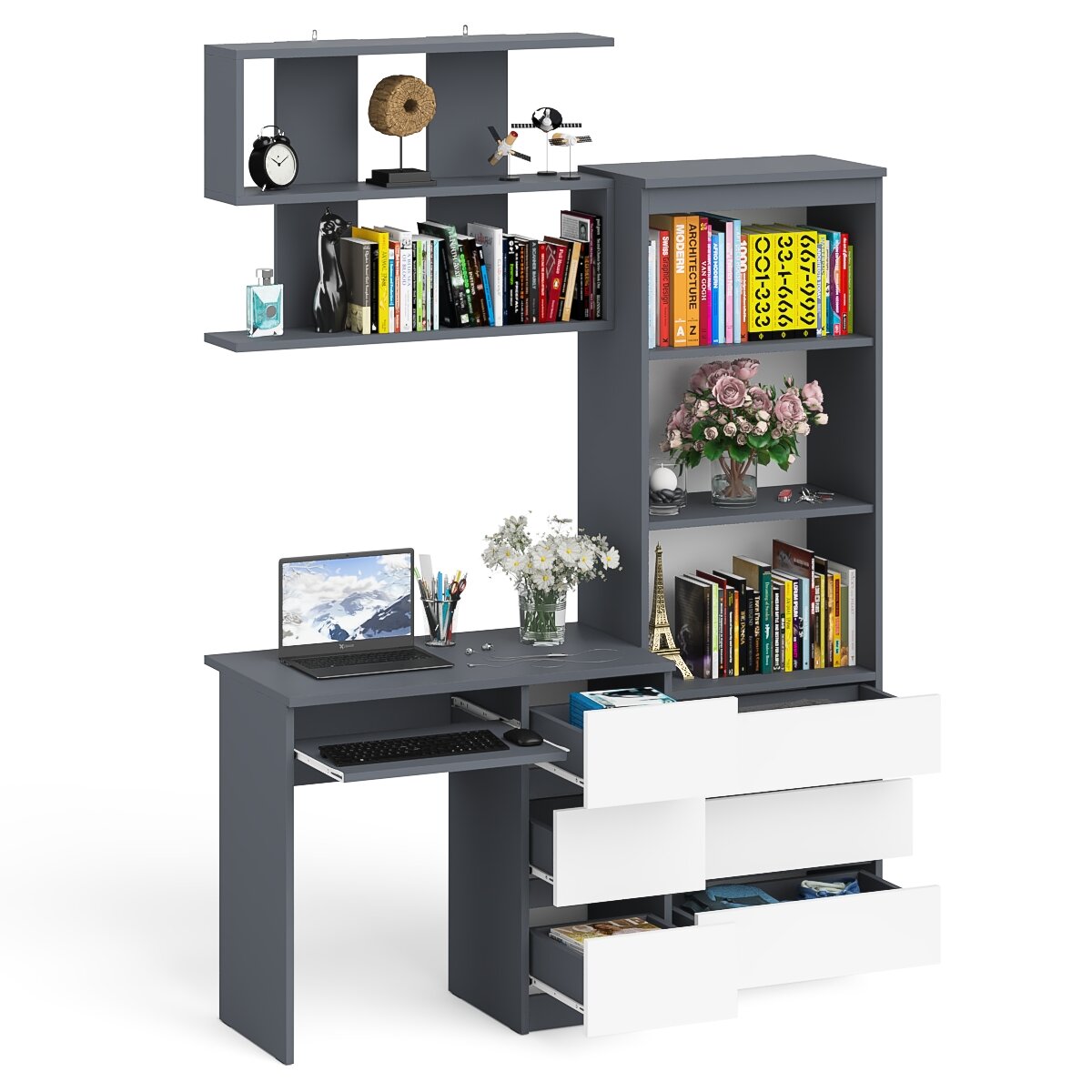 | Дополнительная информация | включает стол компьютерный три ящика правый, стеллаж с ящиками Мори и навесную полку; отсутствие ручек главное преимущество данной модели - роль ручек выполняют сами фасады; на нижних кромках опор предусмотрены пластиковые подпятники; поставляется в разобранном виде в надёжной упаковке |