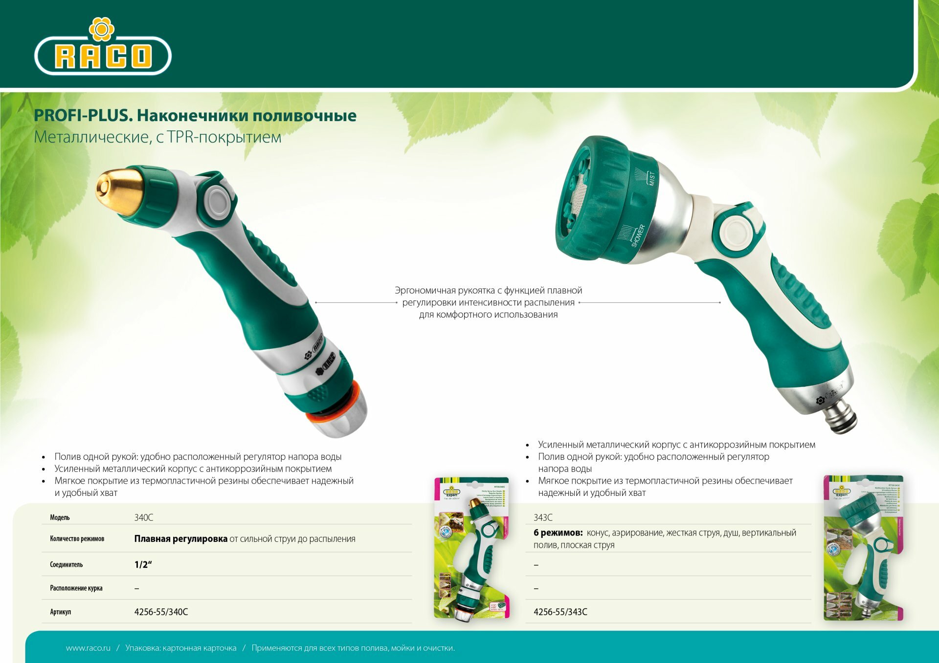 RACO 343C, 6 режимов, металлический с TPR, поливочный пистолет (4256-55/343C): сравнение цен, характеристики, фото, актуальное наличие и цены.