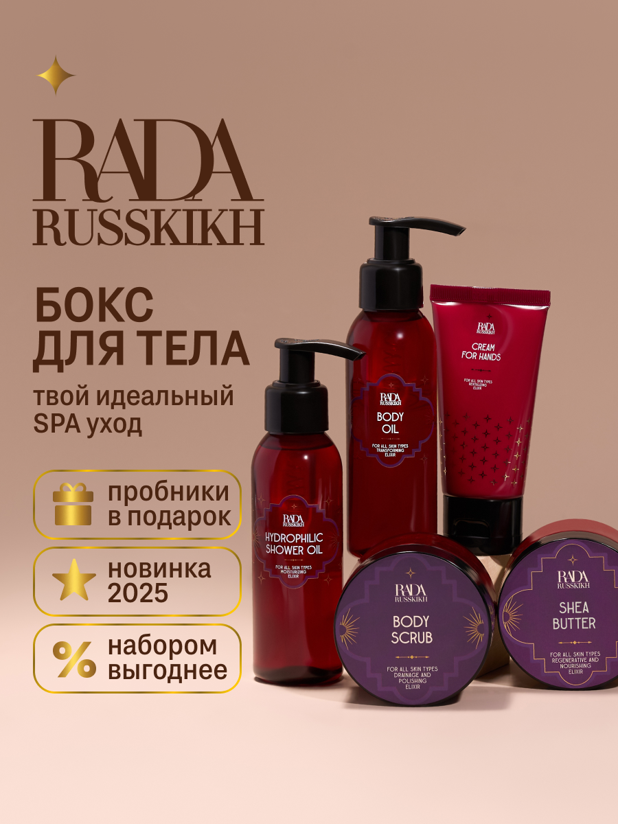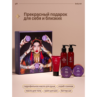 | Способ применения | Гидрофильное масло для душа: нанесите небольшое количество средства на кожу не используя агрессивные губки, при контакте с водой образуется молочко с легкой пенкой, которое очень бережно очистит вашу кожу и подарит приятные ощущения. После смойте водой и нанесите на влажную чистую кожу Масло для тела. Минимальный расход косметики от 4 до 6 месяцев. Попробуйте СПА уход, не выходя из ванной. Скраб-гоммаж для тела: подходит для использования в сауне и хамаме. Нанесите достаточное количество скраба на влажную кожу энергичными массажными движениями, уделяя особое внимание огрубевшим и проблемным зонам. В завершении смойте тёплой водой или удалите влажным полотенцем. Масло для тела: во время душа очистите кожу Гидрофильным маслом для тела, нанесите массажными движениями небольшое количество масла для тела на влажную кожу после душа, равномерно распределяя. Минимальный расход косметики от 4 до 6 месяцев. Баттер Ши: нанесите баттер ши на стопы, локти, кутикулу для дополнительного увлажнения или перед выходом на улицу для защиты от обморожения кожи. Крем для рук: можно применять ежедневно в качестве увлажняющего и защитного средства с антивозрастным действием. Для лучшего восстановления кожи, крем рекомендуется наносить перед сном или на время отдыха от ручной работы. |
