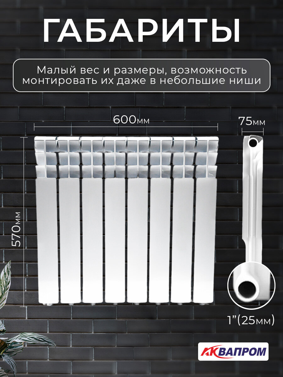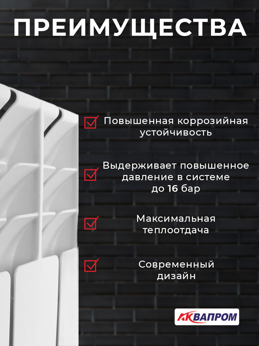 Купить Радиатор биметаллический аквапром BI 500/80 B21 (1001-1603) (8 секций) с доставкой по всей России. Радиатор биметаллический аквапром BI 500/80 B21 (1001-1603) (8 секций): сравнение цен, характеристики, фото, актуальное наличие и цены.