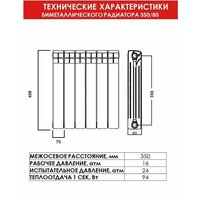 Радиатор биметаллический AQUAPROM/FIRENZE 350*80 6 сек.