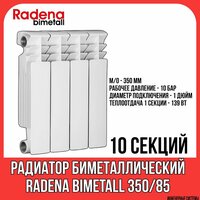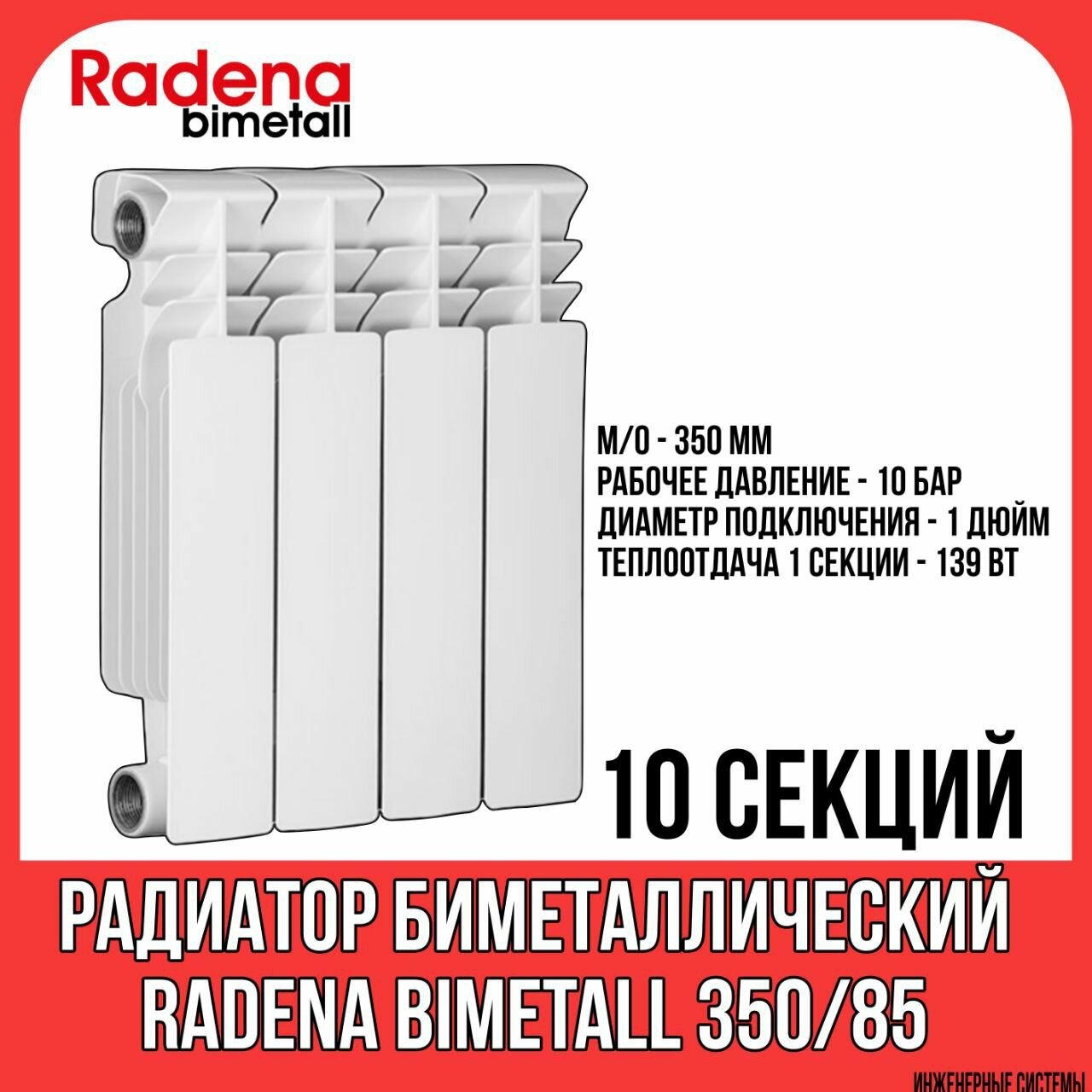 Радиатор биметаллический радена биметалл / RADENA BIMETALL 350/85 10 секций: сравнение цен, характеристики, фото, актуальное наличие и цены.