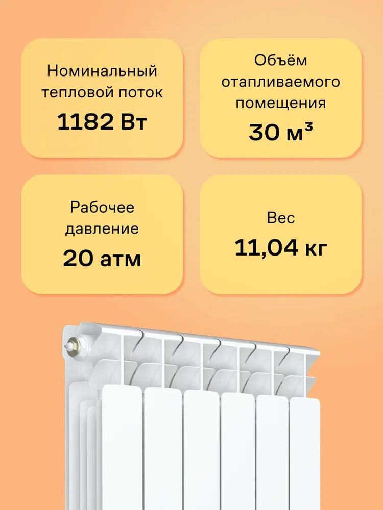 | Теплоотдача при ∆T 70 °С на секцию | 197 Вт |