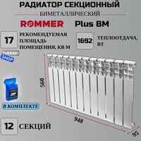 Plus BM 500 12 секций радиатор биметаллический (RAL9016) ROMMER RBM-3210-050012: сравнение цен, характеристики, фото, актуальное наличие и цены.