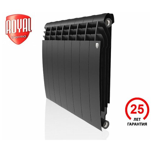Полностью биметаллический дизайн-радиатор Royal Thermo BiLiner 500 Noir Sable - 8 секц. с коллектором из углеродистой стали. Нижние концы ребер расположены по дуге, поэтому холодный воздух эффективно забирается из непрогретых слоев помещения.