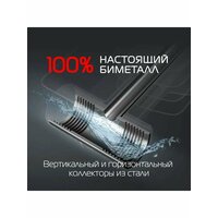 Полностью биметаллический дизайн-радиатор Royal Thermo BiLiner 500 Silver Satin - 8 секц. с коллектором из углеродистой стали. Нижние концы ребер расположены по дуге, поэтому холодный воздух эффективно забирается из непрогретых слоев помещения.