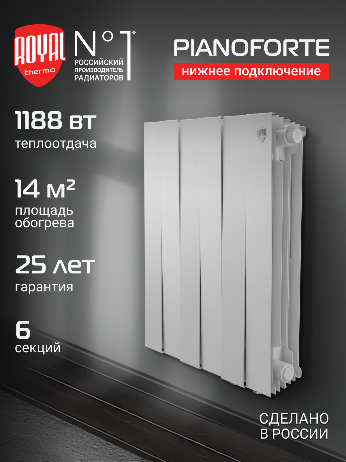 Купить Радиатор биметаллический Royal Thermo PianoForte 500 Белый VR80 — 6 секц с доставкой по всей России.