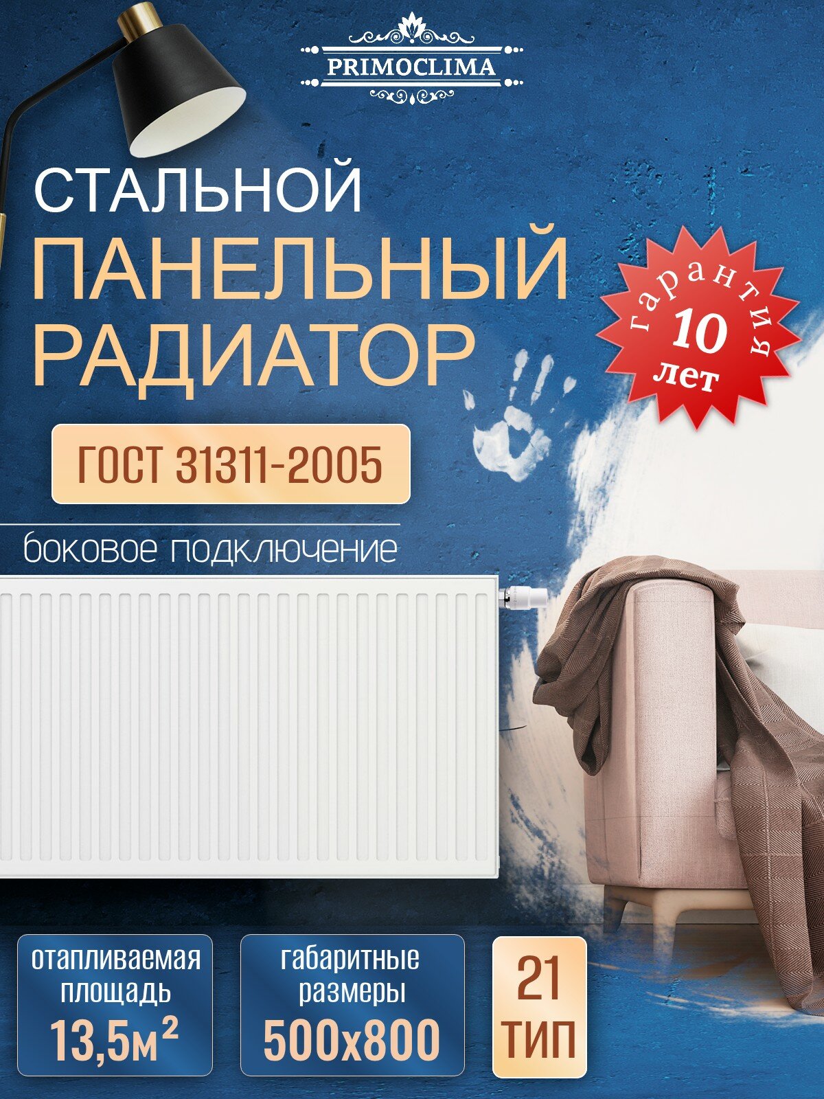 Купить Радиатор отопительный стальной панельный «PRIMOCLIMA» C21 500х800 с доставкой по всей России. Радиатор отопительный стальной панельный «PRIMOCLIMA» C21 500х800: сравнение цен, характеристики, фото, актуальное наличие и цены.