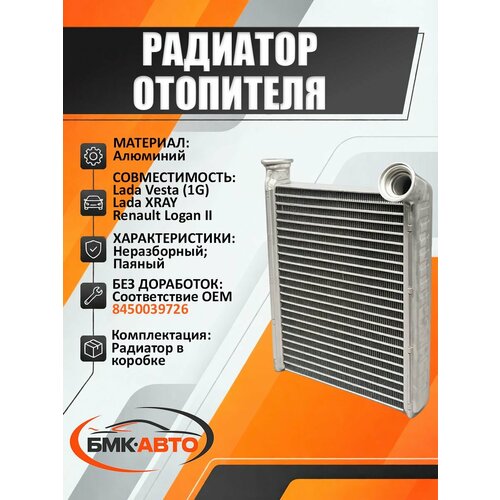 Купить Радиатор отопителя (Печки) 8450039726 паянный для Lada Vesta, XRAY, Renault Logan 2, Kaptur бмк-авто с доставкой по всей России. Радиатор отопителя (Печки) 8450039726 паянный для Lada Vesta, XRAY, Renault Logan 2, Kaptur бмк-авто: сравнение цен, характеристики, фото, актуальное наличие и цены.