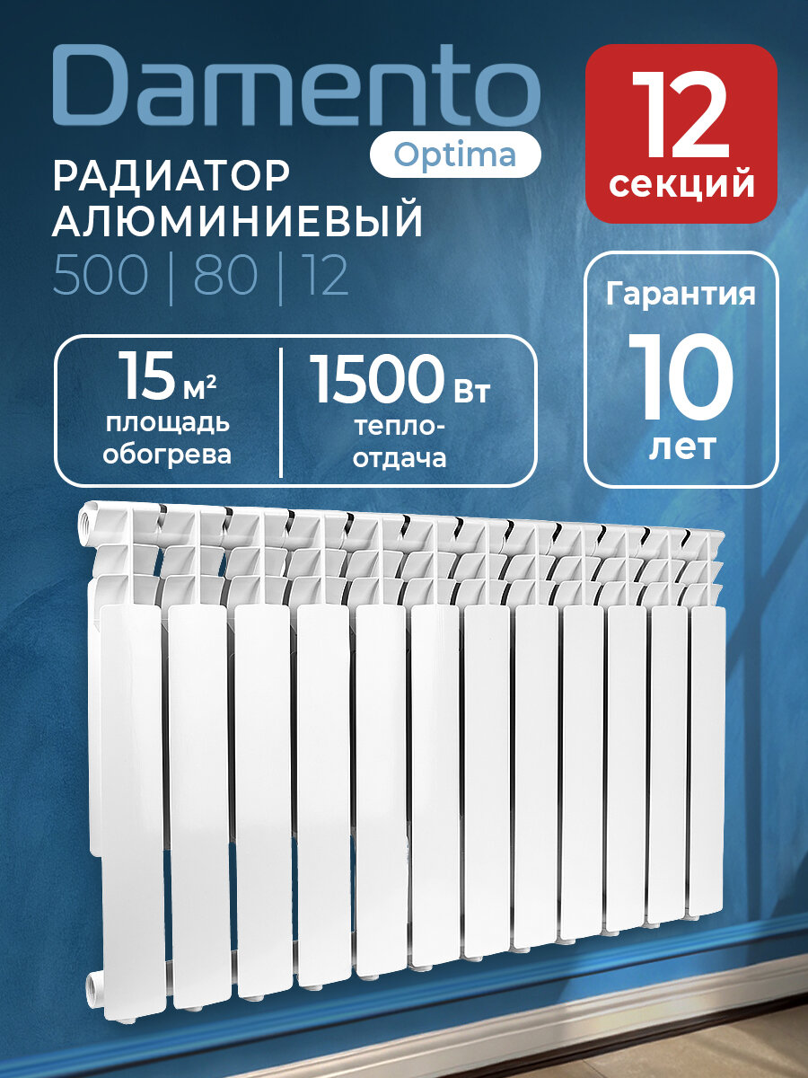 Купить Радиатор отопления алюминиевый 12 секций DAMENTO OPTIMA 500/80 с доставкой по всей России. Радиатор отопления алюминиевый 12 секций DAMENTO OPTIMA 500/80: сравнение цен, характеристики, фото, актуальное наличие и цены.