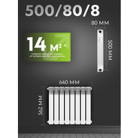 Радиатор отопления биметаллический Oasis Eco, модель 500/80/8, 8 секций / батарея