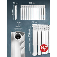 В комплект поставки входит радиатор отопления биметаллический секционный DAMENTO OPTIMA 500/80-12 секций, что обеспечивает удобство и простоту установки.
