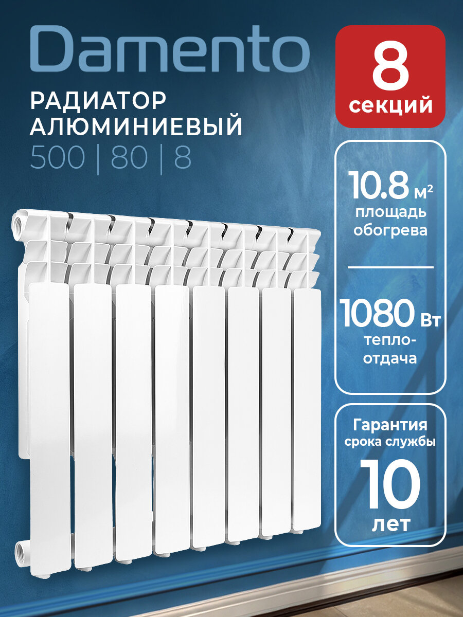 Купить Радиатор отопления Damento 500/80, настенный, 8 секций, алюминий, белый с доставкой по всей России. Радиатор отопления Damento 500/80, настенный, 8 секций, алюминий, белый: сравнение цен, характеристики, фото, актуальное наличие и цены.