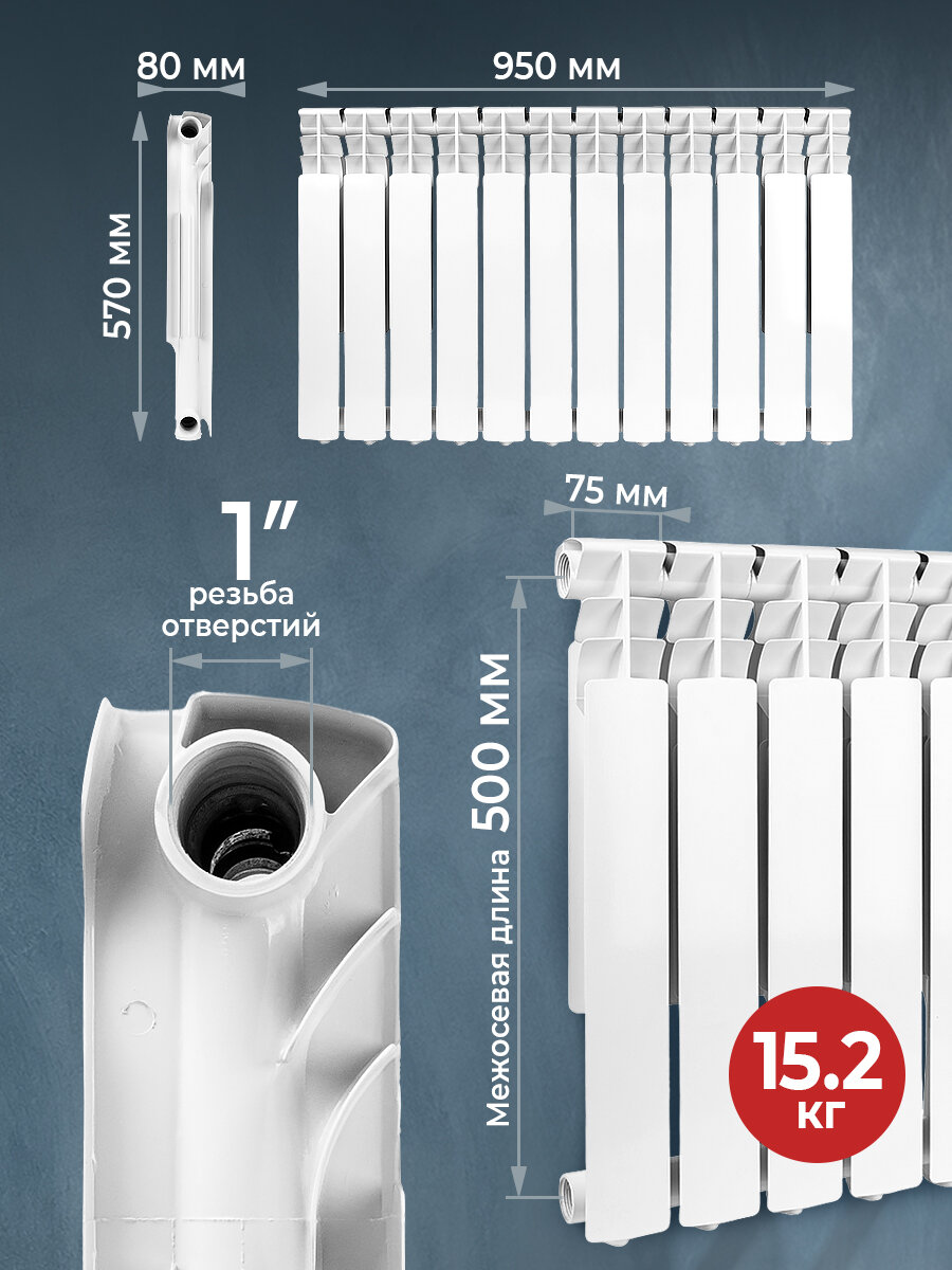 Радиатор отопления DAMENTO, биметалл, 12 секций, настенный, белый: сравнение цен, характеристики, фото, актуальное наличие и цены.