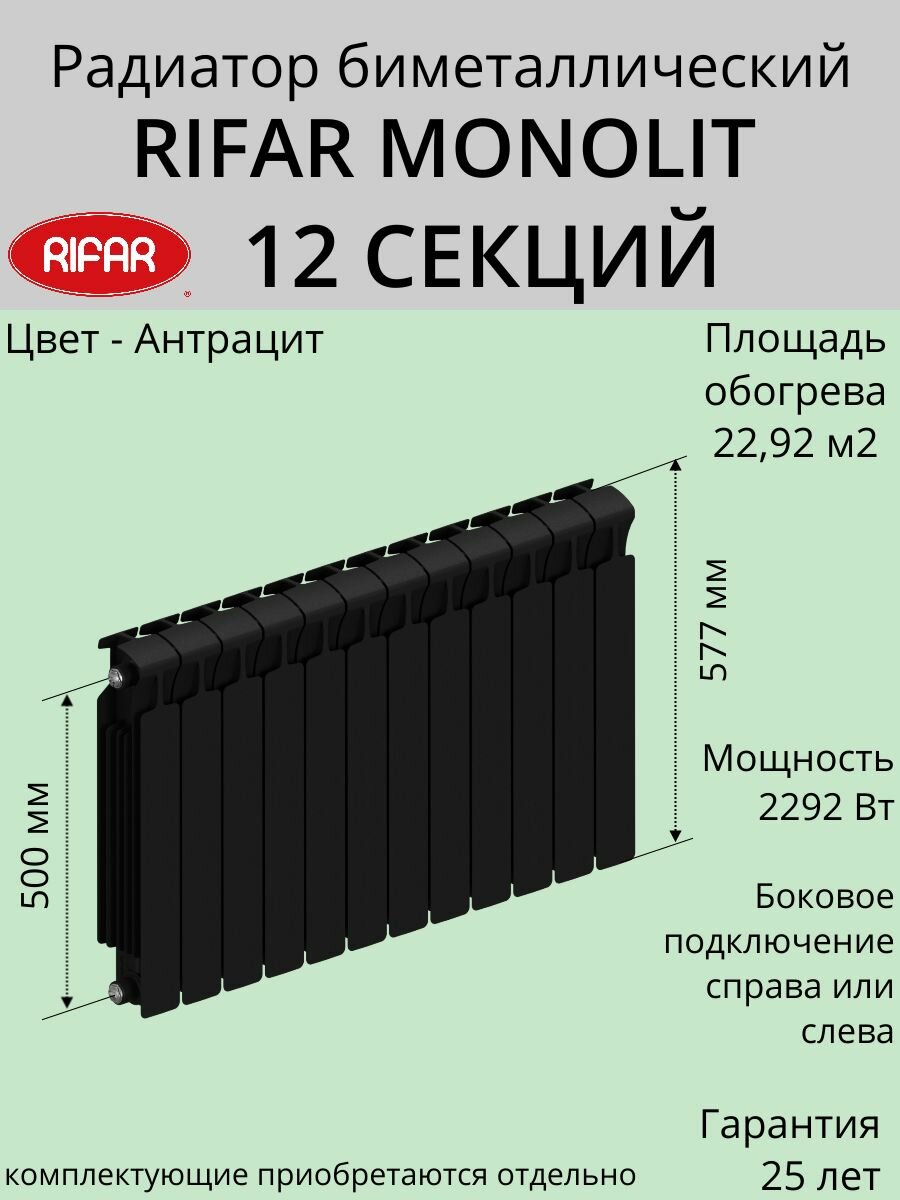 Купить Радиатор отопления RIFAR Monolit биметаллический, 500 х 12 секций, боковое подключение, цвет Антрацит с доставкой по всей России. Радиатор отопления RIFAR Monolit биметаллический, 500 х 12 секций, боковое подключение, цвет Антрацит: сравнение цен, характеристики, фото, актуальное наличие и цены.