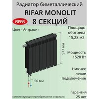 Купить Радиатор отопления RIFAR Monolit Ventil биметаллический, 500 х 8 секций, нижнее подключение левое, цвет Антрацит с доставкой по всей России.