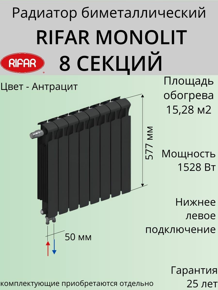 Радиатор отопления RIFAR Monolit Ventil биметаллический, 500 х 8 секций, нижнее подключение левое, цвет Антрацит: сравнение цен, характеристики, фото, актуальное наличие и цены.
