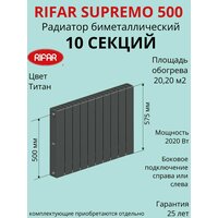 Радиатор отопления RIFAR SUPReMO биметаллический, 500 х 10 секции, боковое подключение, цвет Титан: сравнение цен, характеристики, фото, актуальное наличие и цены.