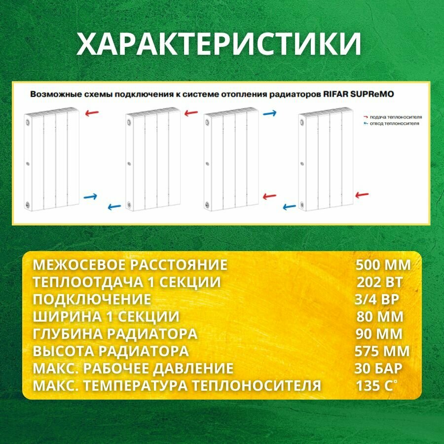 Радиатор отопления RIFAR SUPReMO биметаллический, 500 х 4 секции, боковое подключение, цвет Белый: сравнение цен, характеристики, фото, актуальное наличие и цены.