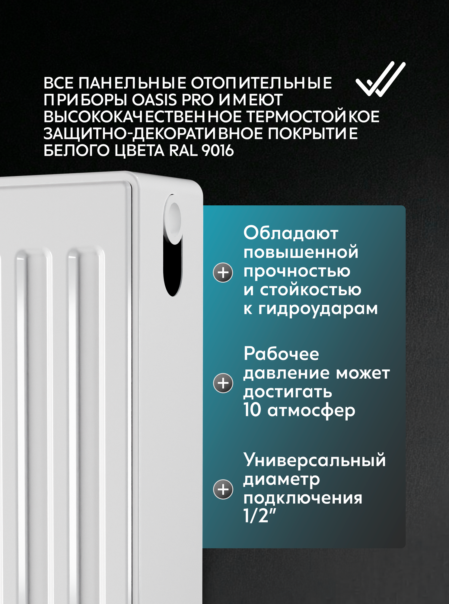 Купить Радиатор отопления стальной панельный Oasis Pro PB 22-5-12, боковое подключение с доставкой по всей России.