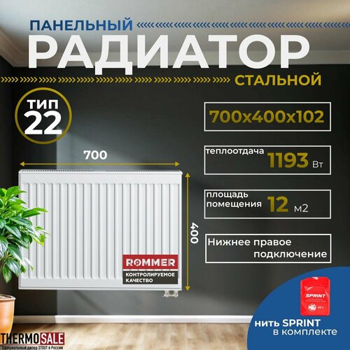 Радиатор отопления стальной панельный Тип 22 / Высота 400 / Длина 700 нижнее правое подключение ROMMER Ventil Нить сантехническая: сравнение цен, характеристики, фото, актуальное наличие и цены.
