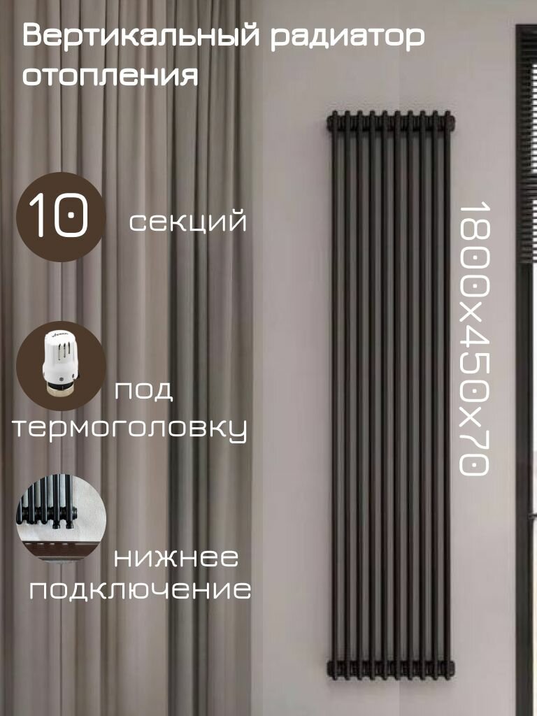 Радиатор отопления, стальной, трубчатый, нижнее подключение, 10 секций, черный: сравнение цен, характеристики, фото, актуальное наличие и цены.