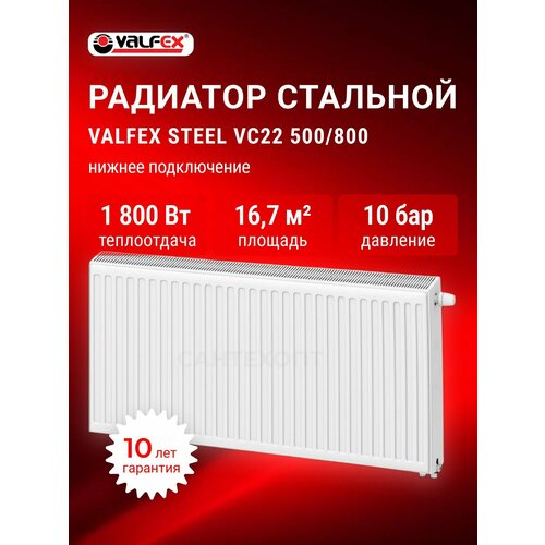 Радиатор стальной VALFEX STEEL VC 22 обладает идеальным соотношением качества и дизайна, что делает его отличным выбором для вашего дома или офиса. Этот панельный радиатор с нижним подключением обеспечивает эффективное отопление и комфортную температуру в помещениях.