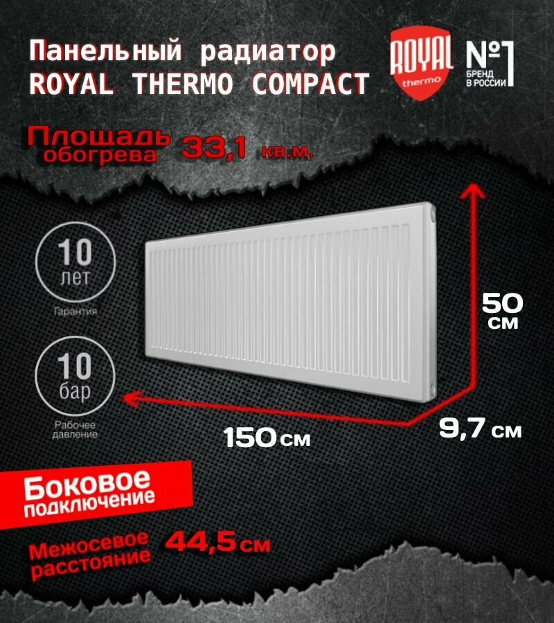 Радиатор панельный Royal Thermo COMPACT C22-500-1500 RAL9016: сравнение цен, характеристики, фото, актуальное наличие и цены.