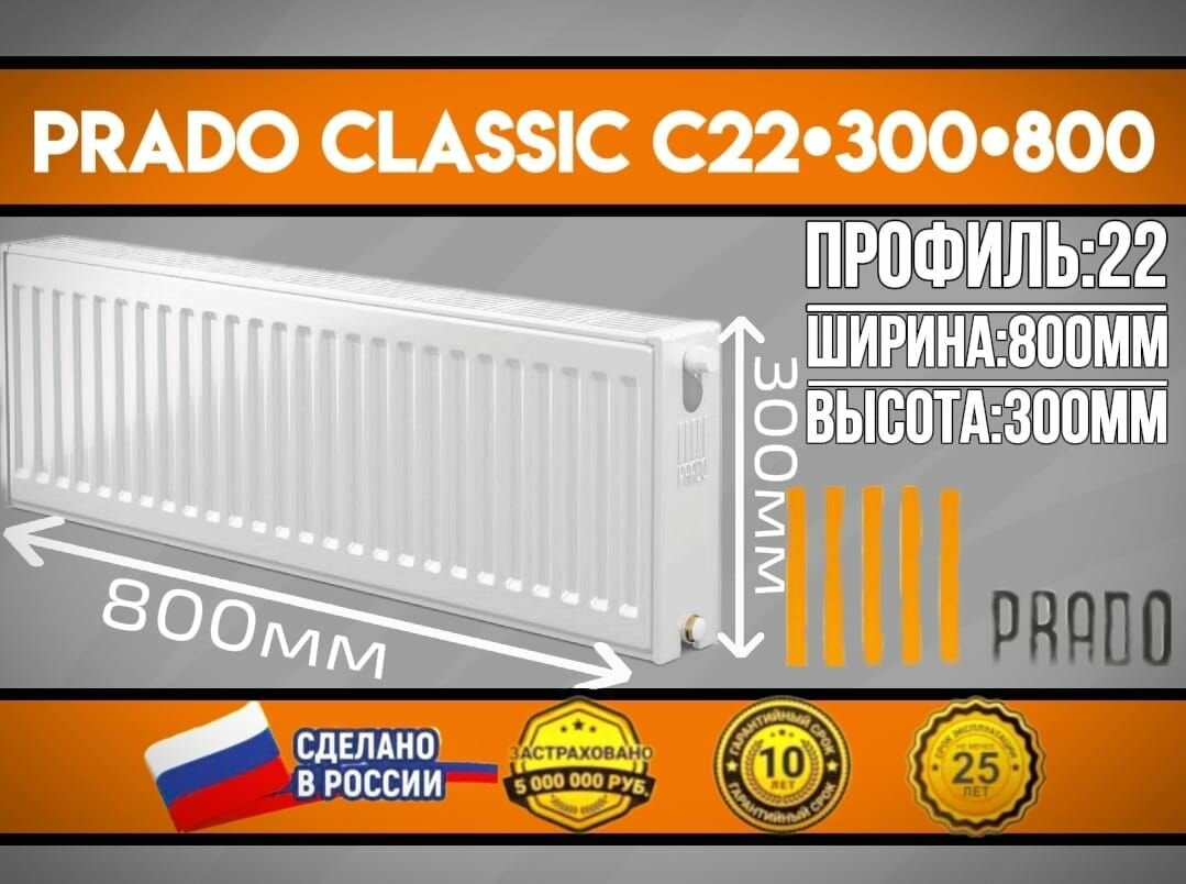 Купить Радиатор Prado Classic C22x300x800 боковое подключение с доставкой по всей России.