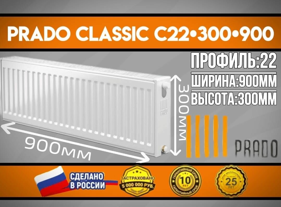 Радиатор Prado Classic C22x300x900 боковое подключение: сравнение цен, характеристики, фото, актуальное наличие и цены.