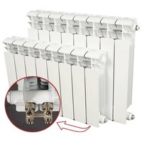 Биметаллические секционные радиаторы RIFAR Base Ventil имеют возможность нижнего подключения к системе отопления. Конструкция: Секция радиатора отопления Rifar состоит из стальной трубы, залитой под высоким давлением алюминиевым сплавом, обладающим высокими прочностными и отличными литейными свойствами. Полученное в результате, монолитное изделие с тонким оребрением, обеспечивает эффективную теплоотдачу, при максимальном запасе прочности битареи отопления биметаллической. В комплект радиатора входят следующие элементы: - клапан маевского 1/2" - 1 шт; - переходник 1/2" для клапана Маевского - 1шт; - заглушка 1" – шт; - распределитель потока теплоносителя - 2 шт; - термостатический клапан (регулятор температуры ручной) - 1шт. Данная комплектация предустановлена на радиатор на заводе-изготовителе. В качестве присоединительной арматуры завод производитель Rifar рекомендует использование узла нижнего подключения фирмы Herz. Так же возможна установка блока нижнего подключения фирм Oventrop, Luxor со стандартным межосевым расстоянием 50 мм . Не допускается использование антифризов.