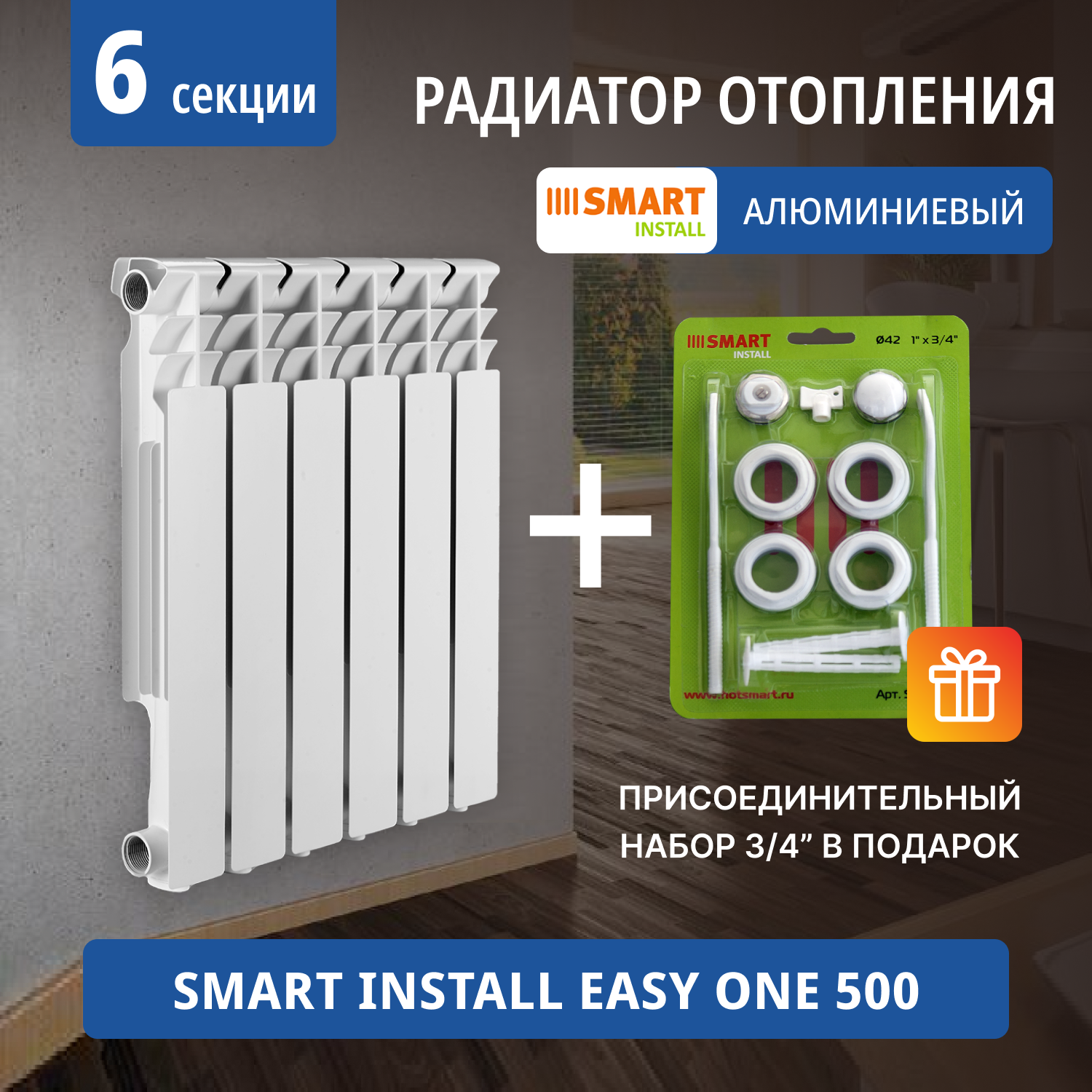 Радиатор SMART Install Easy One, 6секций, боковое подключение, монтажный комплект: сравнение цен, характеристики, фото, актуальное наличие и цены.
