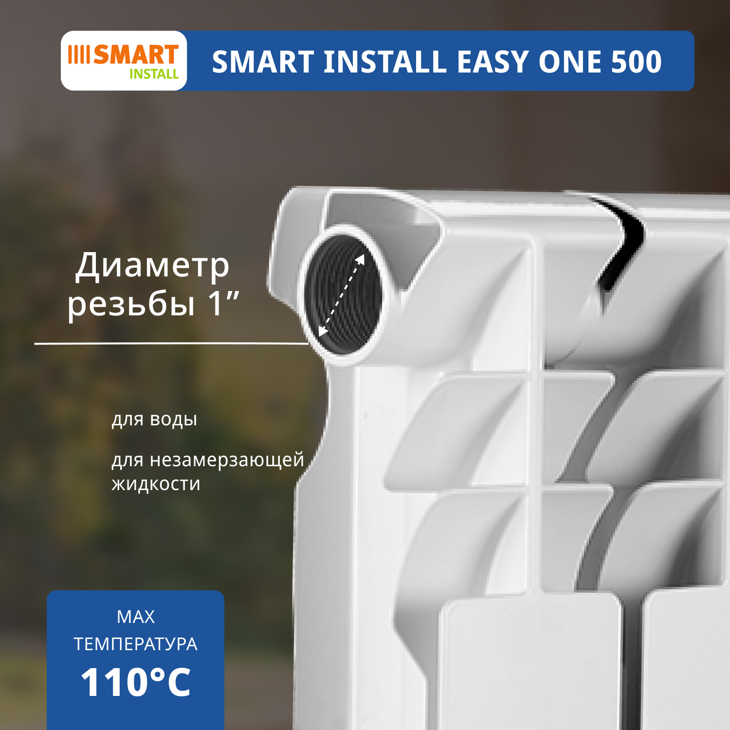 Купить Радиатор SMART Install Easy One, 6секций, боковое подключение, монтажный комплект с доставкой по всей России.