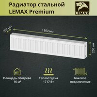 Купить Радиатор стальной Lemax Premium C22-200-1800 панельный с боковым подключением с доставкой по всей России. Радиатор стальной Lemax Premium C22-200-1800 панельный с боковым подключением: сравнение цен, характеристики, фото, актуальное наличие и цены.
