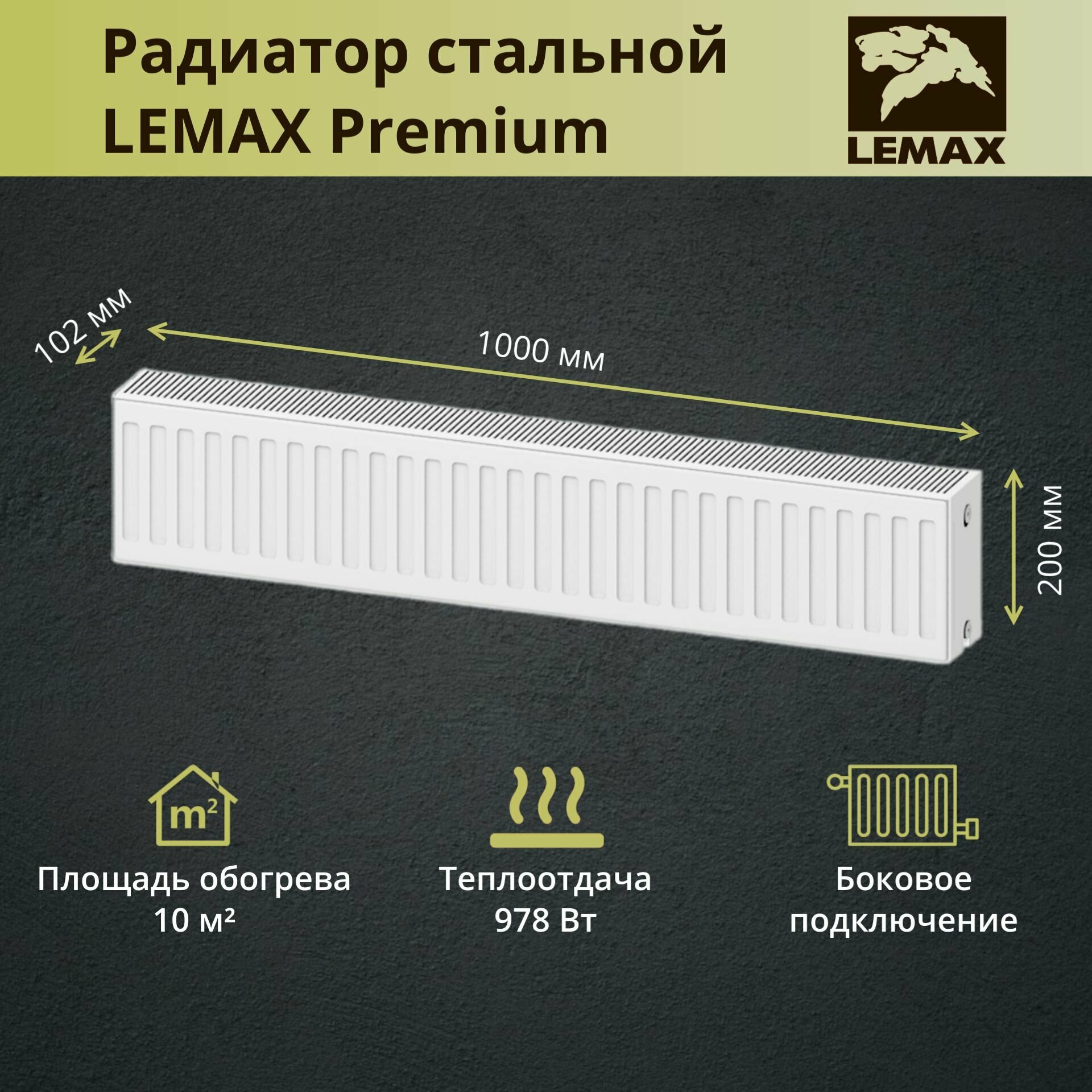 Купить Радиатор стальной Lemax Premium C22-200-1000 панельный с боковым подключением с доставкой по всей России. Радиатор стальной Lemax Premium C22-200-1000 панельный с боковым подключением: сравнение цен, характеристики, фото, актуальное наличие и цены.